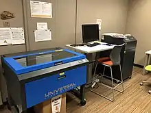 The building or facility the hackerspace occupies provides physical infrastructure that members need to complete their projects. In addition to, most hackerspaces provide electrical power, computer servers, and networking with Internet connectivity. Well-equipped hackerspaces may provide machine tools, sewing, crafting, art fabrication, audio equipment, video projectors, game consoles, electronic instrumentation (such as oscilloscopes and signal generators), electronic components and raw materials for hacking, and various other tools for electronics fabrication and creating things.[11] Specialized large-format printers, 3D printers, laser cutters, industrial sewing machines, CNC machine, or water jet cutters may be available for members to use. Some hackerspaces provide food storage and food preparation equipment, and may teach courses in basic or advanced cooking.