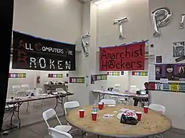 Hacking has been sometime described as a form of culture jamming.[119]: 88 This term refers to the practice of subverting and criticizing political messages as well as media culture with the aim of challenging the status quo. It is often targeted toward subliminal thought processes taking place in the viewers with the goal of raising awareness as well as causing a paradigm shift. Culture jamming takes many forms including billboard hacking, broadcast signal intrusion, ad hoc art performances, simulated legal transgressions,[120] memes, and artivism.[121]