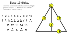 - "Base 4^2 Hexadecimal Symbol Proposal". Hauptmech. Archived from the original on 2021-10-20. Retrieved 2008-09-04.