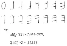 Martin's argument was that use of numerals 0 to 9 in nondecimal numbers "imply to us a base-ten place-value scheme": "Why not use entirely new symbols (and names) for the seven or fifteen nonzero digits needed in octal or hex. Even use of the letters A through P would be an improvement, but entirely new symbols could reflect the binary nature of the system".[19] He also argued that "re-using alphabetic letters for numerical digits represents a gigantic backward step from the invention of distinct, non-alphabetic glyphs for numerals sixteen centuries ago" (as Brahmi numerals, and later in a Hindu–Arabic numeral system), and that the recent ASCII standards (ASA X3.4-1963 and USAS X3.4-1968) "should have preserved six code table positions following the ten decimal digits -- rather than needlessly filling these with punctuation characters" (":;<=>?") that might have been placed elsewhere among the 128 available positions.