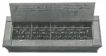 In 1642, while still a teenager, Blaise Pascal started some pioneering work on calculating machines and after three years of effort and 50 prototypes[17] he invented a mechanical calculator.[18][19] He built twenty of these machines (called Pascal's calculator or Pascaline) in the following ten years.[20] Nine Pascalines have survived, most of which are on display in European museums.[lower-alpha 5] A continuing debate exists over whether Schickard or Pascal should be regarded as the "inventor of the mechanical calculator" and the range of issues to be considered is discussed elsewhere.[21]