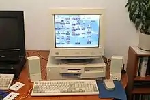Acorn's 8-bit BBC Master Compact shipped with Acorn's first public GUI interface in 1986.[21] Little commercial software, beyond that included on the Welcome disk, was ever made available for the system, despite the claim by Acorn at the time that "the major software houses have worked with Acorn to make over 100 titles available on compilation discs at launch".[22] The most avid supporter of the Master Compact appeared to be Superior Software, who produced and specifically labelled their games as 'Master Compact' compatible.