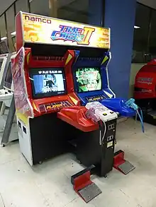 Further drawing players from arcades were the latest home consoles which were now capable of playing "arcade-accurate" games, including the latest 3D games. Increasing numbers of players waited for popular arcade games to be ported to consoles rather than pumping coins into arcade kiosks.[117] This trend increased with the introduction of more realistic peripherals for computer and console game systems such as force feedback aircraft joysticks and racing wheel/pedal kits, which allowed home systems to approach some of the realism and immersion formerly limited to the arcades. To remain relevant, arcade manufacturers such as Sega and Namco continued pushing the boundaries of 3D graphics beyond what was possible in homes. Virtua Fighter 3 for the Sega Model 3, for instance, stood out for having real-time 3D graphics approaching the quality of CGI full motion video (FMV) at the time.[118] Likewise, Namco released the Namco System 23 to rival the Model 3. By 1998, however, Sega's new console, the Dreamcast, could produce 3D graphics on-par with the Sega Naomi arcade machine. After producing the more powerful Hikaru board in 1999 and Naomi 2 in 2000, Sega eventually stopped manufacturing custom arcade system boards, with their subsequent arcade boards being based on either consoles or commercial PC components.