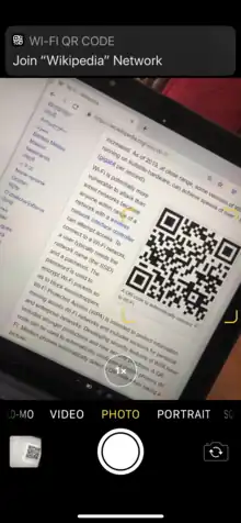 A pop-up in the top of the screen after the camera recognizes a QR code