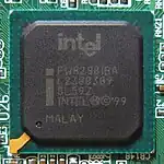 The ICH1 or the new ICH2 (360 pins) could be placed to the side of the 82815. An ICH2 could also be used with Intel's 82850 chipset, which, like the 82820 before it, required the use of RDRAM and supported the Pentium 4 CPU. For the first time a Fast Ethernet chip (82559) was integrated into the southbridge, depending upon an external PHY chip.