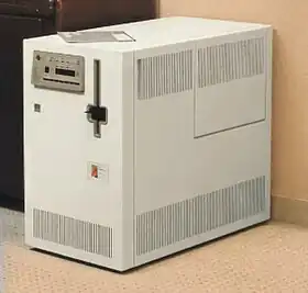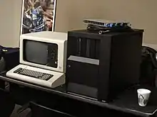 The model 5363 was positioned as a replacement for the 5364, and was announced in October 1987.[10] It used a deskside tower style enclosure like that of the 5362, but was only 2/3 the size. It featured updated hardware using newer, smaller hard drive platters, a 51⁄4" diskette drive, and a revised distribution of the SSP.