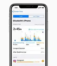 In January 2018, investors JANA Partners and the California State Teachers' Retirement System had issued a public letter to Apple, calling for them to take additional responsibility for the "unintentional negative consequences" that iPhones may have on younger users, and to seek out new ways to limit these effects.[12][13] In June 2018, after the announcement of the Screen Time feature, Tim Cook publicly admitted that he "was spending a lot more time than [he] should" on his phone.[14] JANA Partners and CalSTRS issued a second letter to express their support for the new feature.[15]