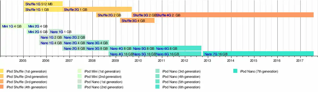 On July 27, 2017, the iPod Shuffle, along with the iPod Nano, was discontinued.[24]