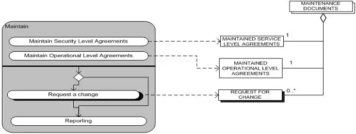 Maintenance of operational level agreements This keeps the operational level agreements in proper condition. The process ends with maintained operational level agreements.