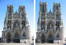 Some image editors allow the user to distort (or "transform") the shape of an image. While this might also be useful for special effects, it is the preferred method of correcting the typical perspective distortion which results from photographs being taken at an oblique angle to a rectilinear subject. Care is needed while performing this task, as the image is reprocessed using interpolation of adjacent pixels, which may reduce overall image definition. The effect mimics the use of a perspective control lens, which achieves a similar correction in-camera without loss of definition.