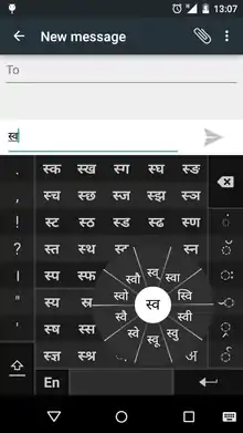 Screenshot of Swarachakra, a input method producing Indic scripts.