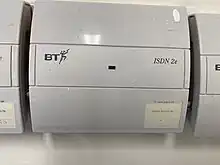 Integrated Services Digital Network (ISDN) is a set of communication standards for simultaneous digital transmission of voice, video, data, and other network services over the digitalised circuits of the public switched telephone network.[1] Work on the standard began in 1980 at Bell Labs and was formally standardized in 1988 in the CCITT "Red Book".[2] By the time the standard was released, newer networking systems with much greater speeds were available, and ISDN saw relatively little uptake in the wider market. One estimate suggests ISDN use peaked at a worldwide total of 25 million subscribers at a time when 1.3 billion analog lines were in use.[3] ISDN has largely been replaced with digital subscriber line (DSL) systems of much higher performance.