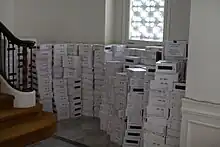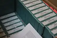 The Internet Archive acquires most materials from donations,[34] such as hundreds of thousands of 78 rpm discs from Boston Public Library in 2017,[35] a donation of 250,000 books from Trent University in 2018,[36] and the entire collection of Marygrove College's library in 2020 after it closed.[37] All material is then digitized and retained in digital storage, while a digital copy is returned to the original holder and the Internet Archive's copy, if not in the public domain, is lent to patrons worldwide one at a time under the controlled digital lending (CDL) theory of the first-sale doctrine.[38]