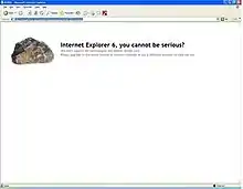 Internet Explorer 6 has also been criticized due to its instability. For example, the following code on a website would cause a program crash in IE6: