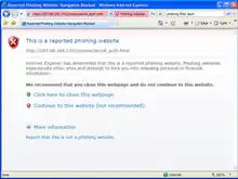 - The new Phishing Filter offers protection against phishing scams and other websites that may be considered dangerous for a user to enter their personal information into. When enabled, every website the user visits is checked against a master list of known phishing sites. If a site is listed, the user is informed. In light of the privacy implications of this feature, it is not enabled automatically; the user is asked when they start Internet Explorer 7 if they want it enabled.[28] Microsoft is working in conjunction with companies that specialize in identifying phishing schemes to ensure the list of known sites is accurate and quickly updated.[29]