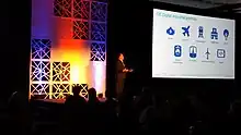 Other examples of large-scale deployments underway include the Sino-Singapore Guangzhou Knowledge City;[87] work on improving air and water quality, reducing noise pollution, and increasing transportation efficiency in San Jose, California;[88] and smart traffic management in western Singapore.[89] Using its RPMA (Random Phase Multiple Access) technology, San Diego-based Ingenu has built a nationwide public network[90] for low-bandwidth data transmissions using the same unlicensed 2.4 gigahertz spectrum as Wi-Fi. Ingenu's "Machine Network" covers more than a third of the US population across 35 major cities including San Diego and Dallas.[91] French company, Sigfox, commenced building an Ultra Narrowband wireless data network in the San Francisco Bay Area in 2014, the first business to achieve such a deployment in the U.S.[92][93] It subsequently announced it would set up a total of 4000 base stations to cover a total of 30 cities in the U.S. by the end of 2016, making it the largest IoT network coverage provider in the country thus far.[94][95] Cisco also participates in smart cities projects. Cisco has deployed technologies for Smart Wi-Fi, Smart Safety & Security, Smart Lighting, Smart Parking, Smart Transports, Smart Bus Stops, Smart Kiosks, Remote Expert for Government Services (REGS) and Smart Education in the five km area in the city of Vijaywada, India.[96][97]