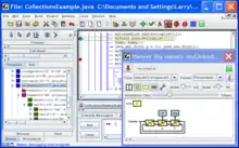 jGRASP is a development environment that includes the automatic creation of software visualizations. It produces static visualizations of source code structure and visualizations of data structures at runtime.[1]