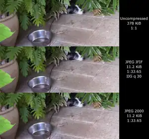 ![]() Comparison of JPEG 2000 with the original JPEG format | |