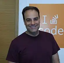 ![]() Joel Spolsky at the Stack Exchange London office, June 2014. | |