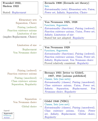 At the beginning of the 20th century, efforts to base mathematics on naive set theory suffered a setback due to Russell's paradox (on the set of all sets that do not belong to themselves).[89] The problem of an adequate axiomatization of set theory was resolved implicitly about twenty years later by Ernst Zermelo and Abraham Fraenkel. Zermelo–Fraenkel set theory provided a series of principles that allowed for the construction of the sets used in the everyday practice of mathematics, but did not explicitly exclude the possibility of the existence of a set that belongs to itself. In his 1925 doctoral thesis, von Neumann demonstrated two techniques to exclude such sets—the axiom of foundation and the notion of class.[90]