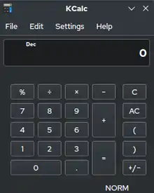 KCalc is a scientific software calculator integrated with the KDE Gear.[2]