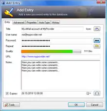 "Add Entry" dialog in KeePass