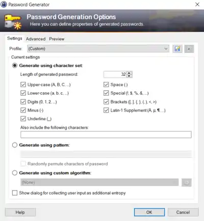 KeePass features a built-in password generator that generates random passwords. Random seeding can be done through user input (mouse movement and random keyboard input).[19]