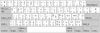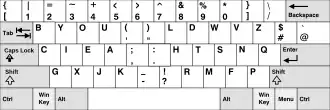 The United States keyboard layout is used as default in some Linux distributions.[26]
