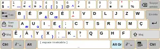 - Caractères supportés [Characters and languages supported by the Bépo layout] (wiki) (in French), archived from the original on 2011-04-09, retrieved 2011-05-28