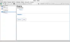 KJots is a simple outliner text editor which can be used to create a personal wiki. It uses a basic tree structure to organize information: it refers to nodes as ‘books’ and leaves as ‘pages’. It includes a book view, which shows a table of contents, and a view mode for all entries.