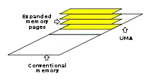 The first public version of the EMS standard, called EMS 3.0 was released in 1985; EMS 3.0, however, saw almost no hardware implementations before being superseded by EMS 3.2.[1] EMS 3.2 used a 64 KiB region in the upper 384 KiB (upper memory area) divided into four 16 KiB pages, which could be used to map portions of the expanded memory.[1]