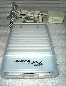 The SuperDisk LS-120 is a high-speed, high-capacity alternative to the 90 mm (3.5 in), 1.44 MB floppy disk. The SuperDisk hardware was created by 3M's storage products group Imation in 1996,[1] with manufacturing chiefly by Matsushita.