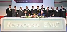 In 2013, Lenovo created a joint venture with EMC named Iomega.[44] The venture took over Iomega's business and rebranded all of Iomega's products under the LenovoEMC brand, and designed products for small and medium-sized businesses that could not afford enterprise-class data storage.[45][46][47] Lenovo has since retired all of the LenovoEMC products on their product page advising that the products are no longer available for purchase on lenovo.com.[48]