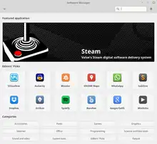 Linux Mint is a community-driven Linux distribution based on Ubuntu (which is in turn based on Debian), bundled with a variety of free and open-source applications.[6][7] It can provide full out-of-the-box multimedia support for those who choose to include proprietary software such as multimedia codecs.[8] Compared to standard Ubuntu, it uses the Cinnamon interface in the most popular edition,[9] using a different, more traditional layout that can be customized by dragging the applets and creating panels. New applets can also be downloaded.[10]