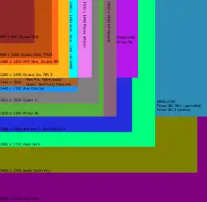 Max. Resolution (per eye) | Resolution (per eye, region specific) | PPD | Aspect Ratio (per eye) | Refresh rate |