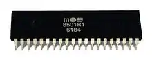 The 7501/8501 variant of the 6510 was introduced in 1984.[3] Compared to the 6510, this variant extends the number of I/O port pins from 6 to 8, but omits the pins for non-maskable interrupt and clock output.[4] It is used in Commodore's C16, C116 and Plus/4 home computers, where its I/O port controls not only the Datasette but also the CBM Bus interface. The main difference between 7501 and 8501 CPUs is that they were manufactured with slightly different processes: 7501 was manufactured with HMOS-1 and 8501 with HMOS-2.[3]