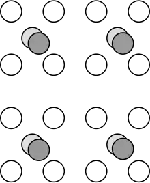 Example of 4:2:0 subsampling. The two overlapping center circles represent chroma blue and chroma red (color) pixels, while the 4 outside circles represent the luma (brightness).