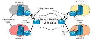 MPLS VPN is a family of methods for using Multiprotocol Label Switching (MPLS) to create virtual private networks (VPNs). MPLS VPN is a flexible method to transport and route several types of network traffic using an MPLS backbone.