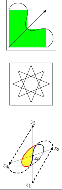 This is a single file example.mp which when processed by the MetaPost interpreter (via the command mpost on Linux) produces three eps files example.1, example.2, example.3. These are pictured on the right.