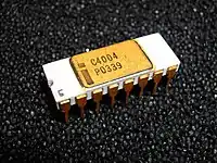 Following the development of MOS integrated circuit chips in the early 1960s, MOS chips reached higher transistor density and lower manufacturing costs than bipolar integrated circuits by 1964. MOS chips further increased in complexity at a rate predicted by Moore's law, leading to large-scale integration (LSI) with hundreds of transistors on a single MOS chip by the late 1960s. The application of MOS LSI chips to computing was the basis for the first microprocessors, as engineers began recognizing that a complete computer processor could be contained on several MOS LSI chips.[11] Designers in the late 1960s were striving to integrate the central processing unit (CPU) functions of a computer onto a handful of MOS LSI chips, called microprocessor unit (MPU) chipsets.