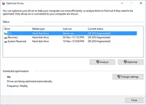 From Windows 8 onwards, the program was renamed to Microsoft Drive Optimizer, with some references changed to say Defragment and Optimize Drives or simply Optimize Drives.