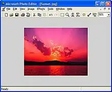 Microsoft Photo Editor is a raster graphics editor component of Microsoft Office first included with Microsoft Office 97. It features editing tools to texturize, create negatives, adjust gamma, and add transparency to GIF images. It was replaced in Microsoft Office 2003 by Microsoft Office Picture Manager, although many Photo Editor features (mostly visual effects and tools) were not available in Picture Manager.[1]