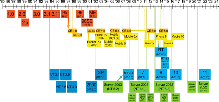 As of 2024, the only active top-level family is Windows NT. The first version, Windows NT 3.1, was intended for server computing and corporate workstations. It grew into a product line of its own and now consists of four sub-families that tend to be released almost simultaneously and share the same kernel.