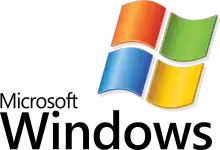 A variation of the Microsoft Windows logo used from 2001 to 2006. This revision is from 2003, and it uses the Segoe typeface. This variation was used for branding purposes, replacing the Franklin Gothic typeface.