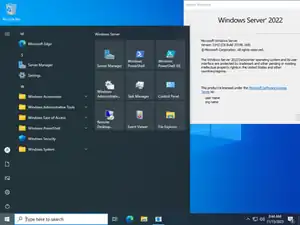 ![]() Windows Server 2022 desktop with Start menu which looks similar to the Windows 10 desktop and Start menu | |