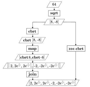 With these elements, the programmer composes a sequence of function calls (a "pipeline") with several bind operators chained together in an expression. Each function call transforms its input plain-type value, and the bind operator handles the returned monadic value, which is fed into the next step in the sequence.