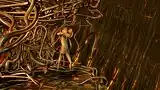 The following is a simplistic illustrated explanation of how motion compensation works. Two successive frames were captured from the movie Elephants Dream. As can be seen from the images, the bottom (motion compensated) difference between two frames contains significantly less detail than the prior images, and thus compresses much better than the rest. Thus the information that is required to encode compensated frame will be much smaller than with the difference frame. This also means that it is also possible to encode the information using difference image at a cost of less compression efficiency but by saving coding complexity without motion compensated coding; as a matter of fact that motion compensated coding (together with motion estimation, motion compensation) occupies more than 90% of encoding complexity.