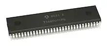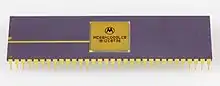 Motorola's first widely produced microprocessor was the 6800, introduced in early 1974 and available in quantity late that year.[8] The company set itself the goal of selling 25,000 units by September 1976, a goal they did meet. Although a capable design, it was eclipsed by more powerful designs, such as the Zilog Z80, and less expensive designs, such as the MOS Technology 6502.[9] By late 1976, the sales book was flat and the division was only saved by a project for General Motors that turned into a huge product line for engine control and other tasks.[10]