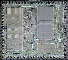 By the mid-1970s, Motorola's MOS design techniques had become less advanced than their competition, and their fabrication lines at times struggled with low yields. By the late-1970s, the company had entered a technology exchange program with Hitachi, dramatically improving their production capabilities. As part of this, a new fab, MOS-8, was built using the latest 5-inch wafer sizes and Intel's HMOS process with a 3.5 μm feature size.[19] This was an investment aimed at catching the competition: even upstart semiconductor companies such as Zilog and MOS Technology had introduced CPUs fabricated on depletion-mode NMOS logic before Motorola did. In fact, Motorola may have substantially lagged contemporaries in phasing out enhancement mode and metal gate, with the director of 68k-series products Tom Gunter recollecting that the 68000 itself had to succeed despite initially adopting a metal-gate design.[20] Though the point about playing catch-up is clear, this could not have been an entirely accurate summary because Motorola's 1976 datasheets, predating the inception of the MACCS project, denote the majority of its 6800 family in silicon-gate.[21] Indeed, Gunter's own 1979 article introducing the 68000 highlighted it as a silicon-gate depletion-mode HMOS design.[22] Whatever the degree of Motorola's process and manufacturing deficits in the early days, the team was undeterred and would not compromise in its pursuit of a microprocessor with industry-leading performance.[23]