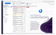 Mozilla Thunderbird is free and open-source[8] email client software which also functions as a full personal information manager with a calendar and contactbook, as well as an RSS feed reader, chat client (IRC/XMPP/Matrix), and news client. Available cross-platform, it is operated by the Mozilla Foundation's subsidiary MZLA Technologies Corporation. Thunderbird is an independent, community-driven project that is managed and overseen by the Thunderbird Council, which is elected by the Thunderbird Community. The project strategy was originally modeled after that of Mozilla's Firefox Web browser and is an interface built on top of that Web browser.[9]